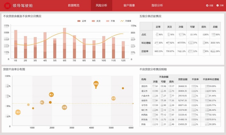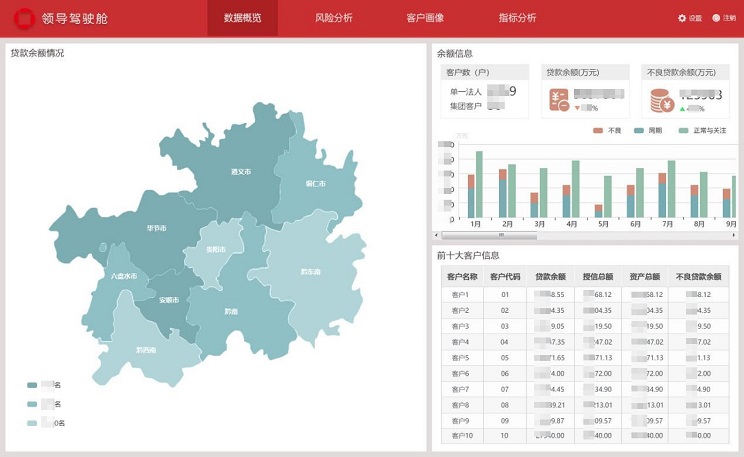 系統(tǒng)覆蓋了客戶風(fēng)險(xiǎn)月報(bào)的常用固定報(bào)表、分析報(bào)表、綜合查詢、等業(yè)務(wù)需求;同時(shí)為了滿足各級(jí)領(lǐng)導(dǎo)快速直觀地了解掌握全行客戶風(fēng)險(xiǎn)情況的需要,開發(fā)實(shí)現(xiàn)了領(lǐng)導(dǎo)駕駛艙功能;為了滿足業(yè)務(wù)人員能夠靈活便捷地對(duì)財(cái)政收支數(shù)據(jù)進(jìn)一步分析,開發(fā)實(shí)現(xiàn)了自助分析功能。