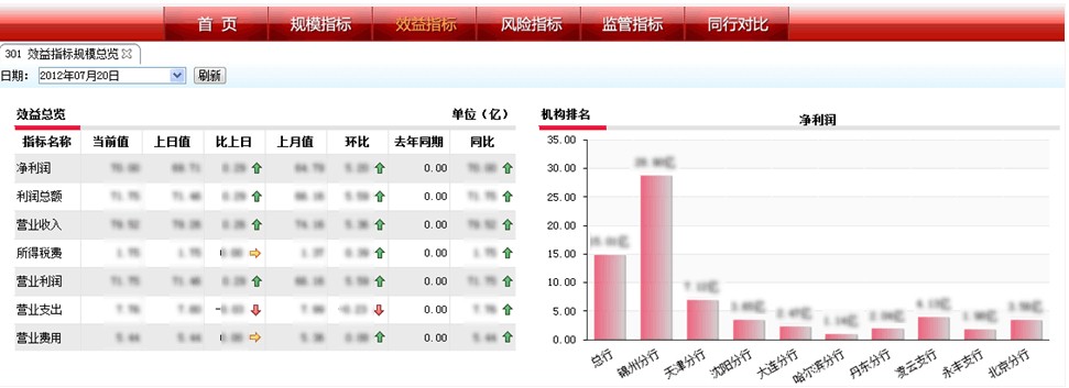 領(lǐng)導(dǎo)駕駛艙是對于管理者開放的模塊,包括管理者日常工作中最關(guān)注的指標(biāo),并且通過直觀的圖形的方式展示,便于管理者快速了解銀行的經(jīng)營狀況以及進(jìn)行風(fēng)險(xiǎn)的預(yù)警。
