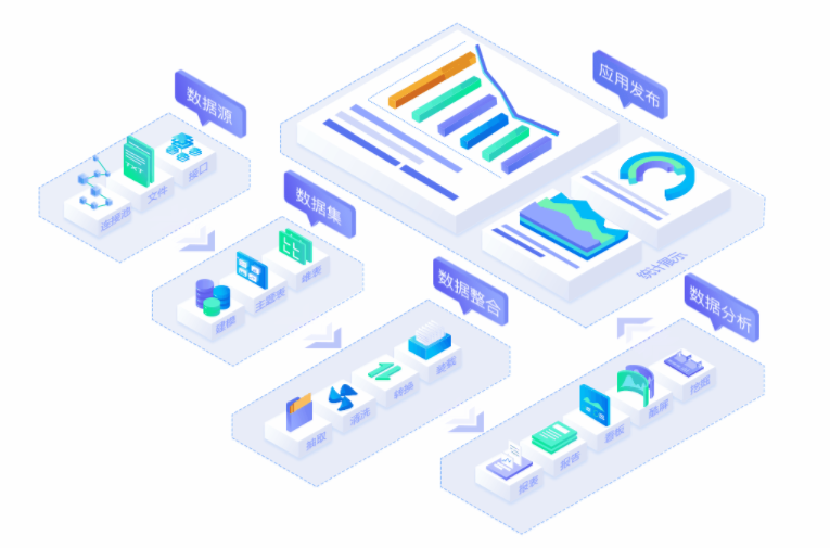 打通數據生命周期各環節 全流程ABI從數據源接入,到數據采集、數據處理,再到數據應用,打通數據生命周期的各個環節,實現數據填報、處理、分析一體化,為用戶提供一站式數據服務。