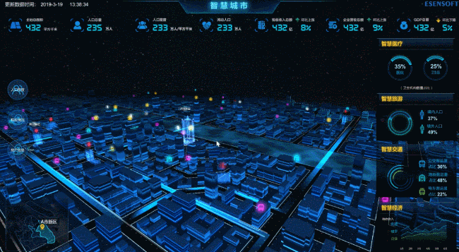 億信ABI內置上百種可視化元素和特效組件,可搭配出成千上萬種可視化效果,更有獨特的3D全景視覺,能隨意制作出炫酷的大屏。