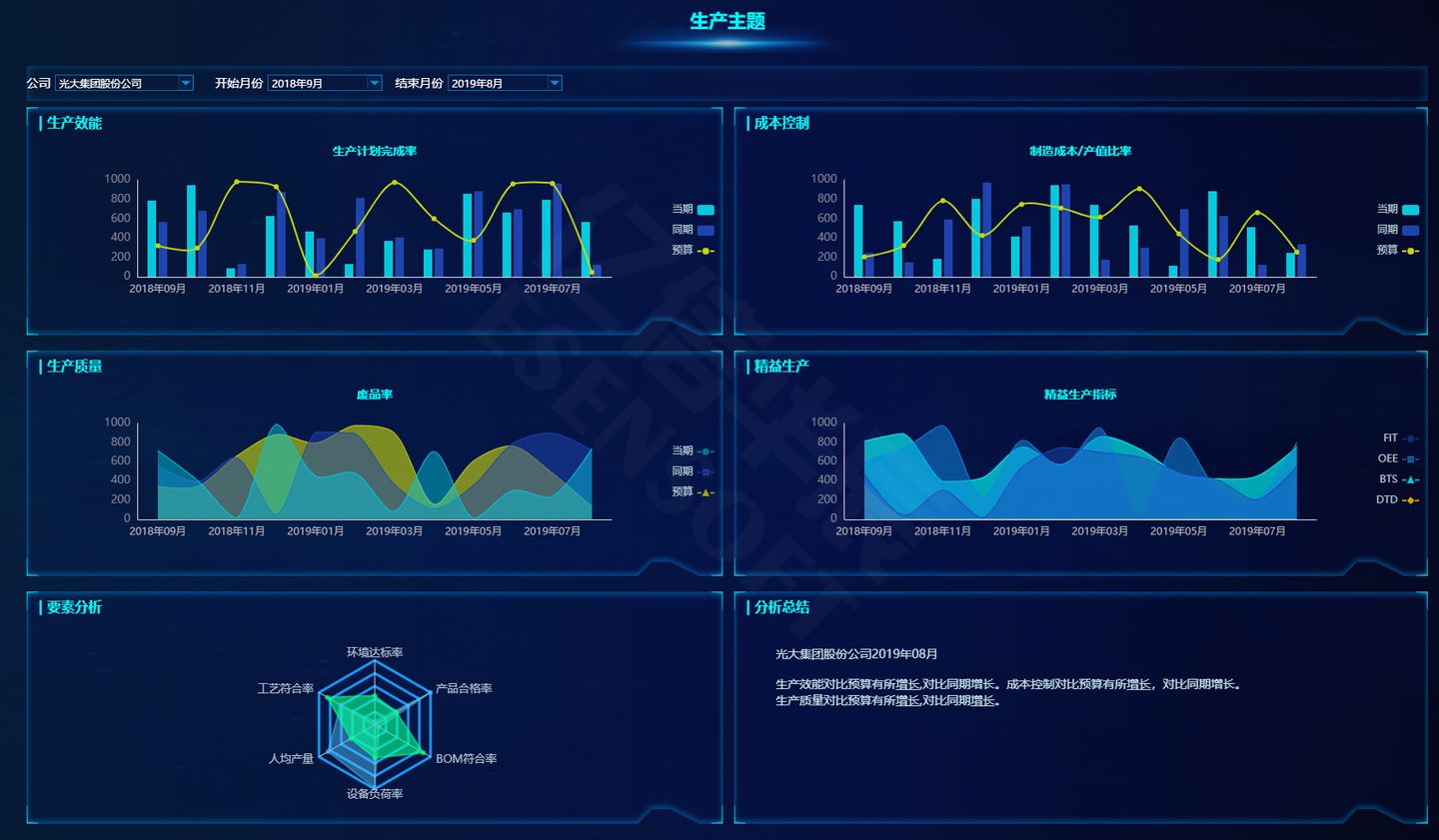 下圖是用億信ABI搭建的生產(chǎn)數(shù)據(jù)分析平臺,都是用于實際生產(chǎn)的可視化報表。