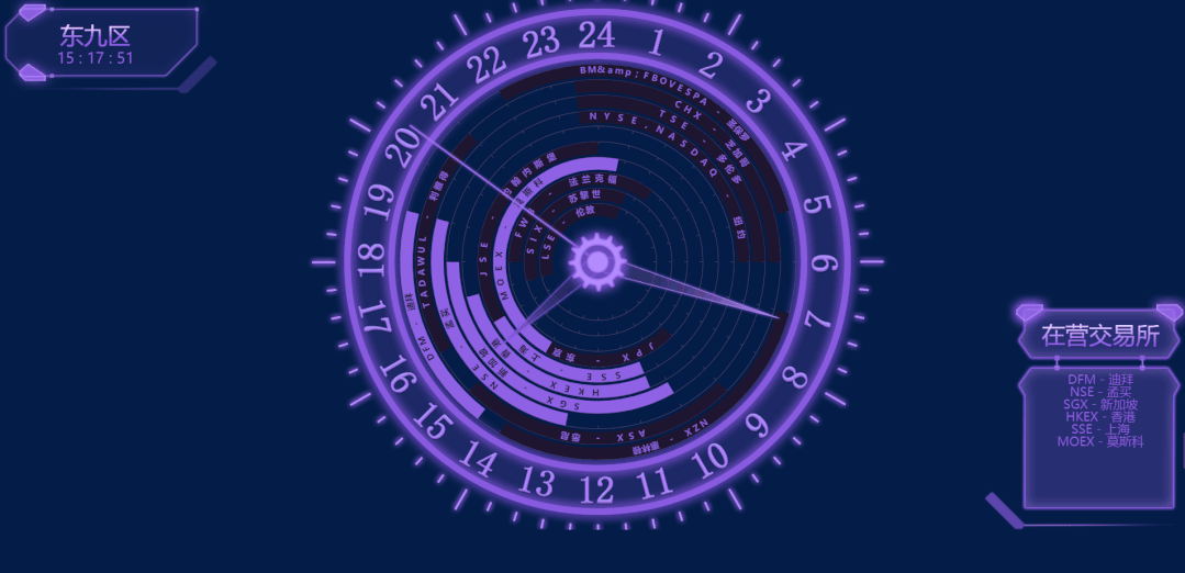 輔助圖表通常圍繞視覺中心的四周,起到錦上添花的作用,用來呈現次要指標,從各種維度進一步細化核心指標。時間類組件 時鐘